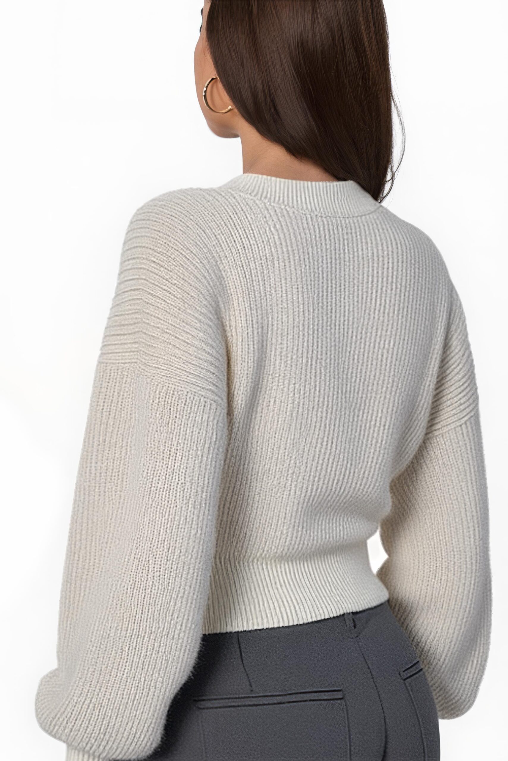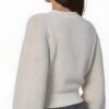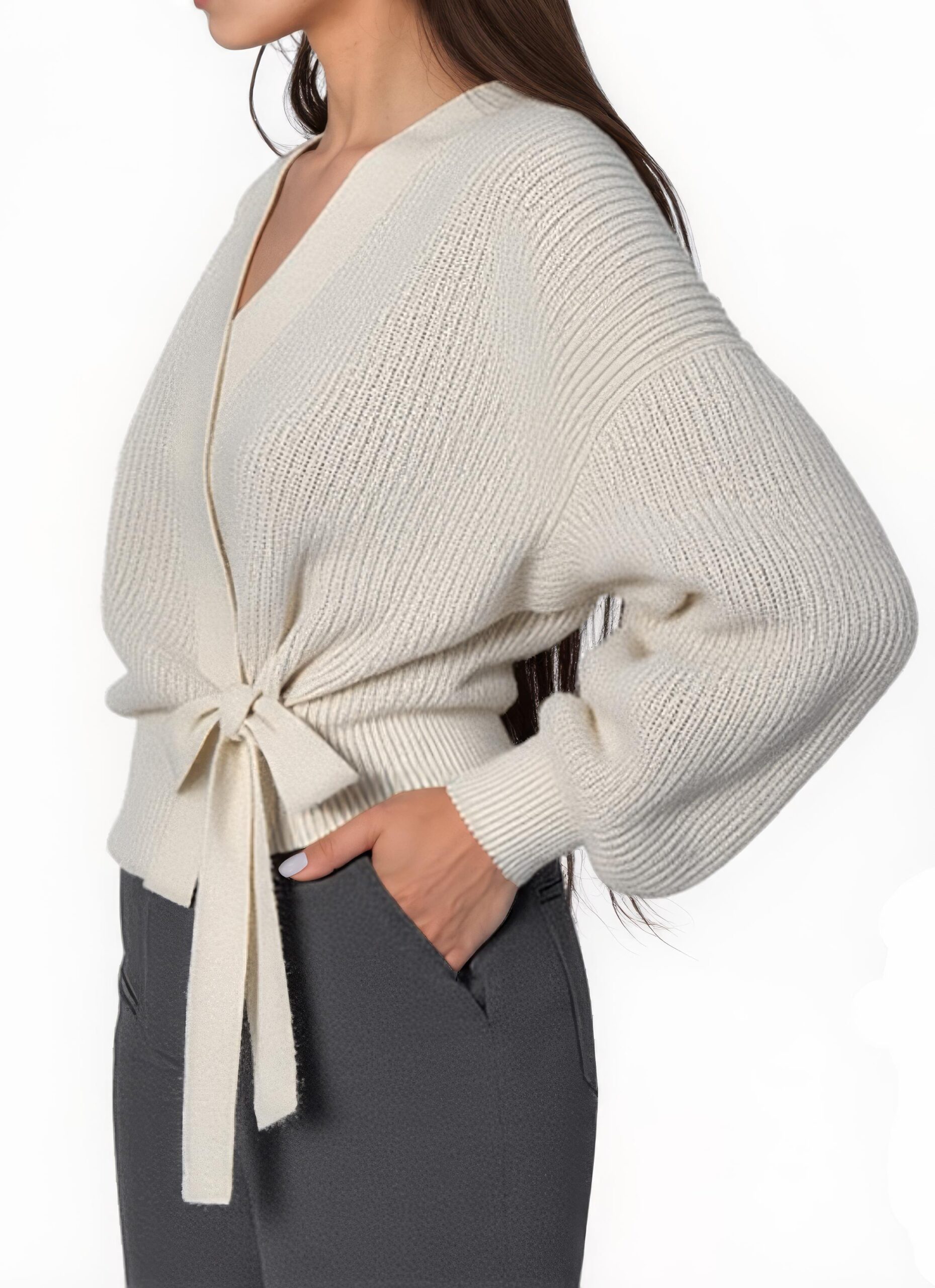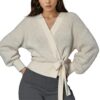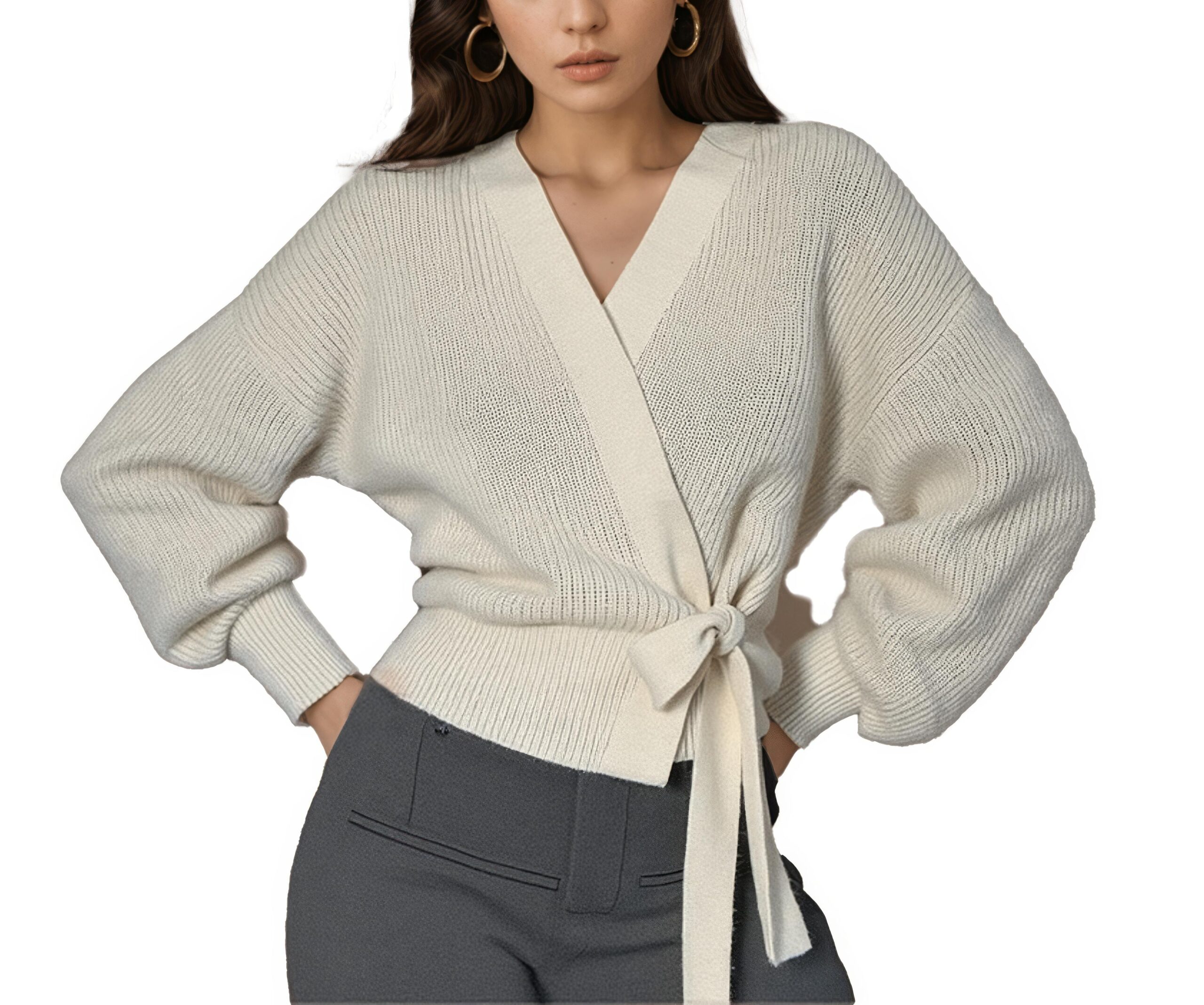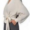 Elegante Wickel-Strickjacke mit Ballonärmeln – Weiß